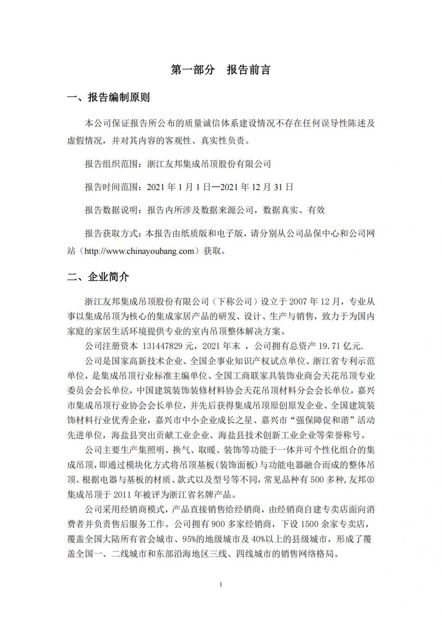 2022年度企業(yè)質(zhì)量誠信報告