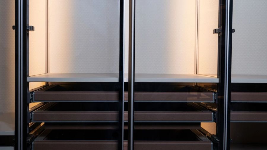 友邦筑家百變柜在整體結(jié)構(gòu)的穩(wěn)固性與產(chǎn)品細(xì)節(jié)體驗(yàn)上也精益求精。柜體和墻面鋁材連接,門(mén)板鉸鏈與立柱連接,層板整條鋁合金連接,長(zhǎng)久使用依然牢固安全。柜體與墻地?zé)o縫銜接,配合門(mén)板密封防塵條,有效阻隔灰塵侵入。內(nèi)置線(xiàn)燈,開(kāi)門(mén)即亮,光線(xiàn)柔和均勻照亮收納區(qū),取物一目了然。
